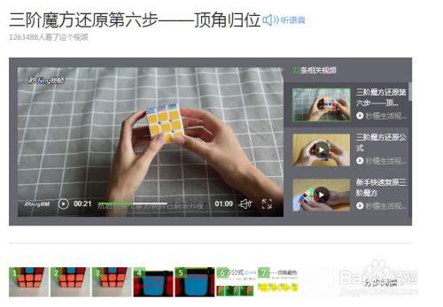 为了帮助大家攻克这个难关,网络上涌现出了大量的三阶魔方第七步视频教程。这些视频详细地展示了每一个步骤的操作方法,让你可以一边观看一边练习。以下是一些备受推崇的三阶魔方第七步视频教程: